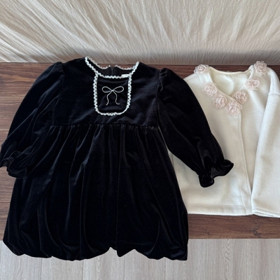 - 비다이어리.리본블랙벨벳원피스(플리스안감)