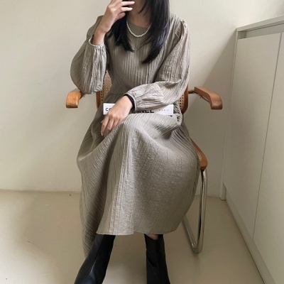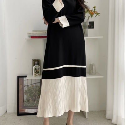 - lu.배색주름롱원피스