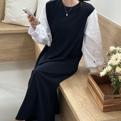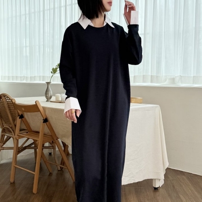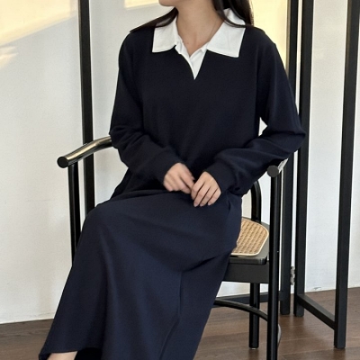 - lu.카라배색롱원피스