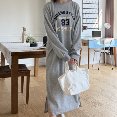 - lu.퍼프배색롱원피스