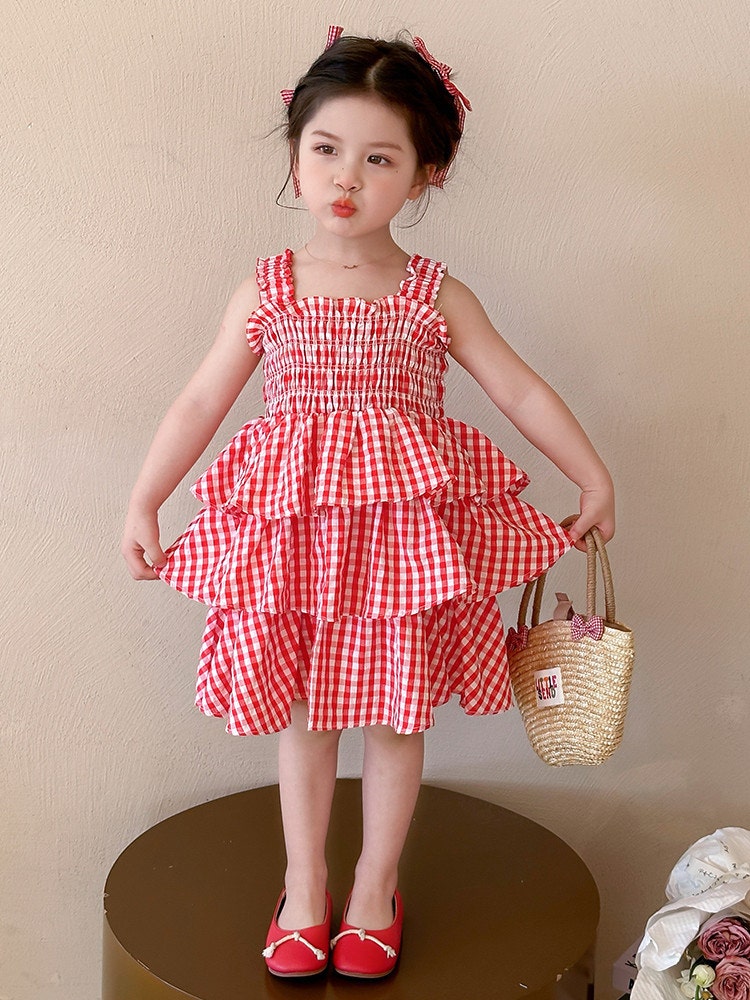 [수입] 레드체크캉캉원피스 (바로배송)