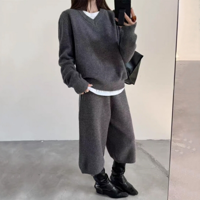 on.[SET348]브이넥니트밴딩팬츠투피스