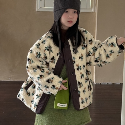 비다이어리.누빈잔꽃뽀글이양털집업